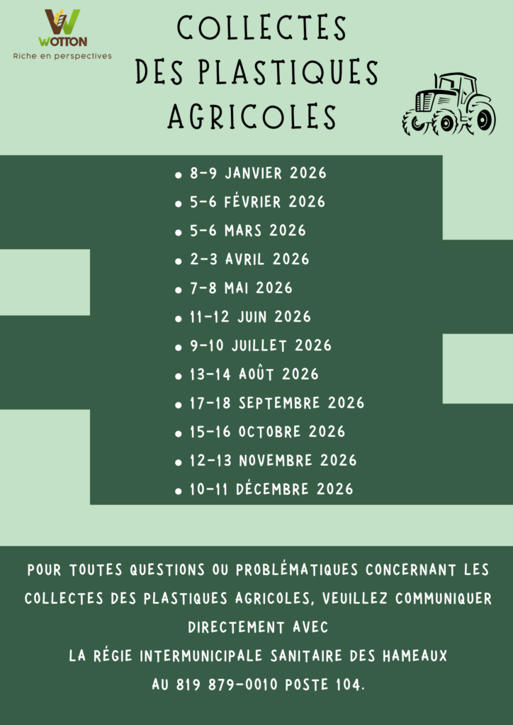 Collectes des plastiques agricoles Auteur/autrice de la publication :Kim Mercier Publication publiée :04/12/2025 Post category:Nouvelle Partagez Partager ce contenu Ouvrir dans une autre fenêtre Facebook Vous devriez également aimer Le processus d’adoption des règlements : l’importance de communiquer vos recommandations à temps 22/11/2024 Bulletin Perspectives – Juin 2025 05/06/2025 Séance du conseil municipal du 15 janvier 2024 – 19H30 08/01/2024